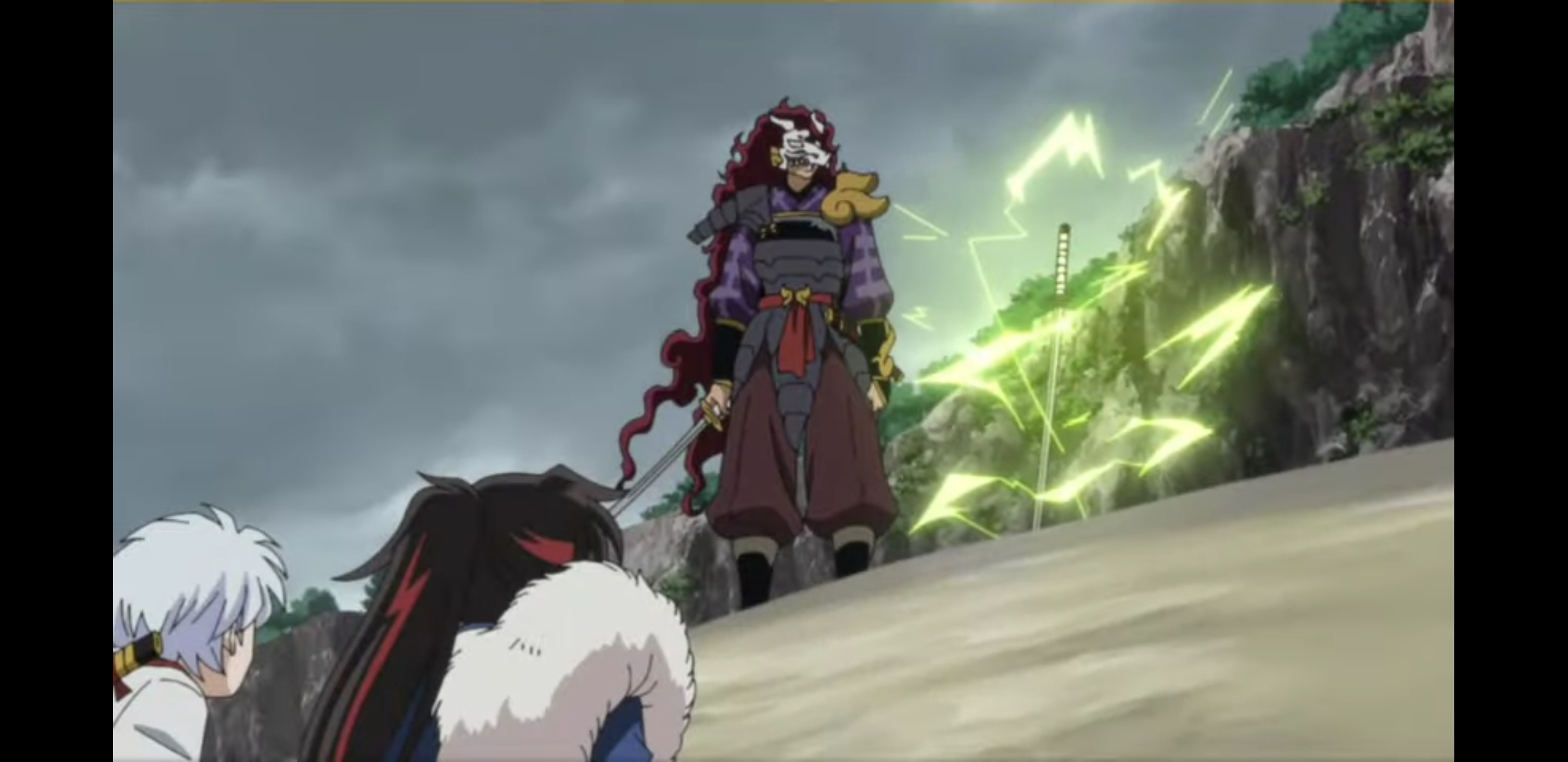 셋쇼마루가 이누야샤 부부를 이누 대장의 무덤으로 보내는 장면도 싱거웠는데 이누야샤가 셋쇼마루와 기린마루에게 세 줄기 명잔파를 쏘자 셋쇼마루도 똑같이 명잔파를 열어 이누야샤의 것을 막고 기린마루가 그 틈에 이누야샤에게 다가가자 셋쇼마루가 더 빨리 앞서가 천생아로 이누야샤로부터 철쇄아를 떨어뜨리고 검은 진주를 빼내도록 연출하면 더 재미있었을 텐데